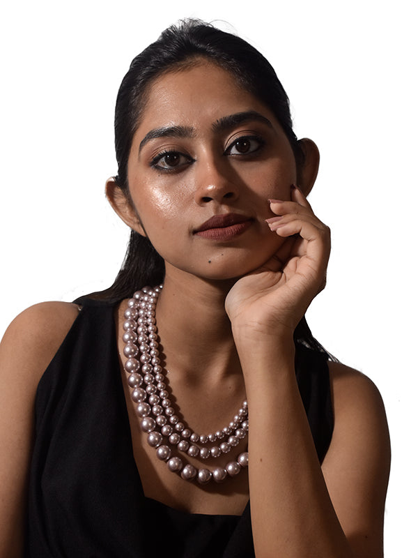 This Purple Beads Necklace features a graceful three line mala design, perfect for ethnic and fusion wear. Crafted with high quality glass beads in a rich purple hue, it's lightweight yet striking. Ideal for festive occasions or casual elegance, this piece adds a touch of royalty to any look.