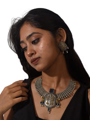 Step up your style game with this modern heavy metal necklace set, accented with bold blue stones. It’s edgy, stylish, and ideal for pairing with both ethnic and contemporary outfits. With its strong design and matching earrings, this set adds a confident, fashion-forward vibe to your wardrobe.