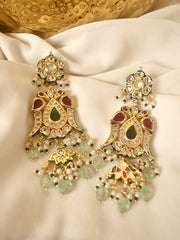 Green and Red Stone Earring | Kundan Earring with Beaded