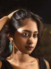 These long Kundan earrings for women feature intricate craftsmanship with sparkling Kundan stones, offering a blend of traditional and contemporary style. Perfect for special occasions, they add elegance and sophistication to any outfit, making them a timeless addition to your jewelry collection.