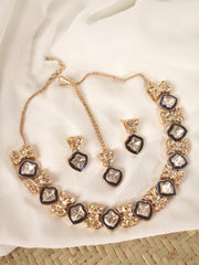Turn heads with this glamorous Blue Kundan Necklace Set, designed to make every occasion sparkle. The bold blue stones set in gleaming kundan work create a perfect harmony of modern design and traditional aesthetics. Lightweight yet luxurious, the set includes matching earrings to complete your elegant look. Ideal for evening parties, receptions, or festive celebrations, it adds a contemporary royal flair to your outfit. Crafted with precision and care, this jewelry piece enhances both ethnic and western ensembles, making you the center of attention wherever you go.
