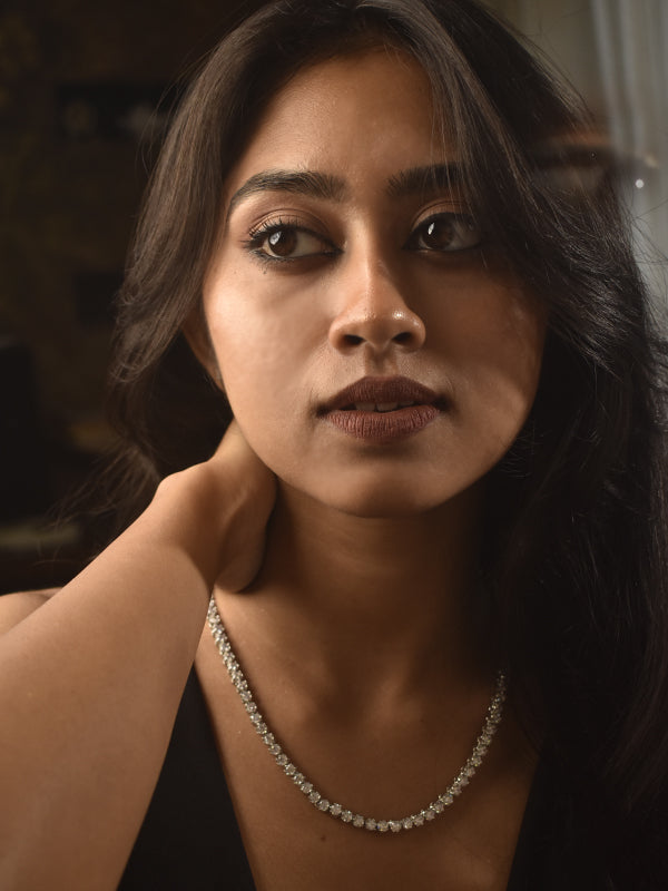 Elevate your elegance with this Beautiful AD Necklace Set, a stunning white necklace set crafted to perfection. Featuring shimmering American Diamonds set in a graceful design, this set includes a statement necklace and matching earrings, perfect for weddings, parties, and festive occasions. The high-quality finish ensures long-lasting shine and durability, while the classic white stones add a timeless charm to your look. Lightweight and skin-friendly, this jewelry set pairs beautifully with both traditional and modern outfits. Whether you're gifting or treating yourself, this AD necklace set is a must-have addition to your collection. Sparkle in every moment with effortless style!