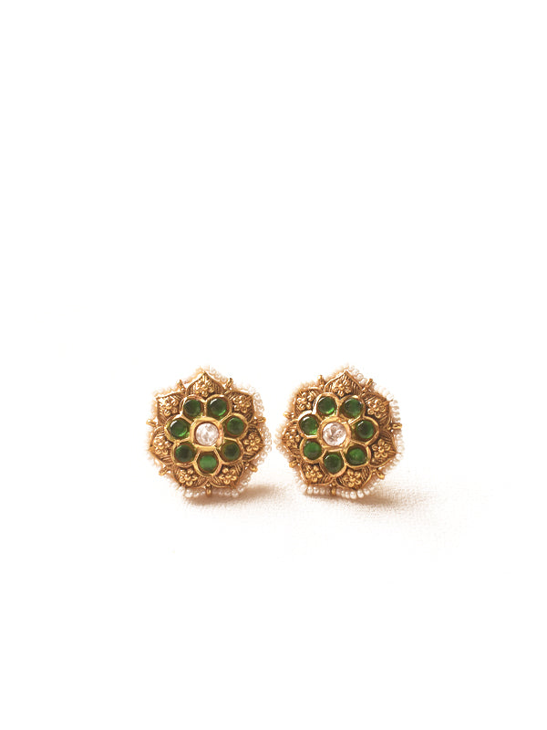 Flower Design Green Pendant Set | Kundan Pendant With Beaded