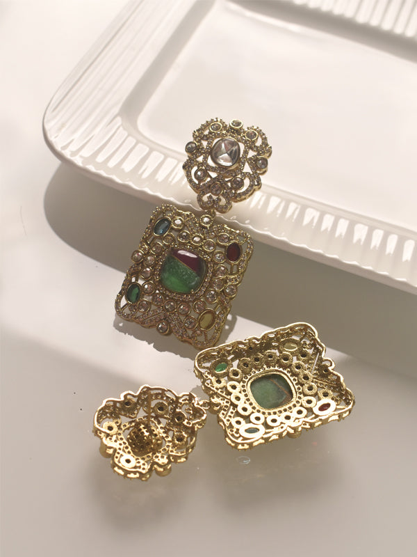 Make a bold and beautiful statement with our Multi Colour Kundan Square Earrings. Designed with precision and traditional artistry, these earrings feature vibrant, hand set Kundan stones arranged in a striking square pattern. The rich mix of colors makes them versatile enough to complement a wide range of ethnic outfits. Whether you're dressing up for a wedding, festive occasion, or cultural event, these earrings add instant elegance and vibrance to your look. Lightweight yet impactful, they are comfortable for all-day wear. A perfect fusion of tradition and trend, these earrings also make a thoughtful gift for someone who loves timeless, colorful jewelry.