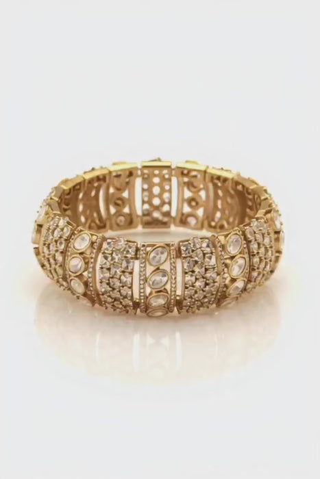 Golden Bracelet with Kundan and AD Stones | Golden Bracelet with Intricate Design